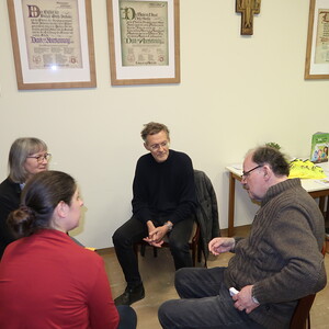 Pfarrer und Hausherr Pfarrer Meßner begrüßte die Teilnehmer:innen und stimmte die Gruppe auf das Thema Schöpfung ein.