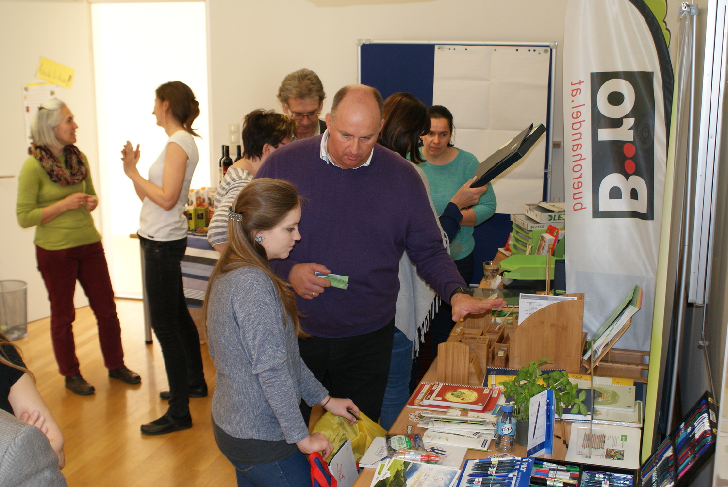 Zerlegbare Mappen, Recycling-Hefte, lösungsmittelfreie Klebstoffe, Ablagen aus Bambus, Kugelschreiber aus PET-Flaschen und Post-its aus Altpapier wurden vorgestellt. Dazu gab es noch nachfüllbare Toner und Druckerpatronen, Grünpflanzen zur Verbesserung des Raumklimas, Fairtrade-Produkte, Taschen und T-Shirts aus Bio-Baumwolle, Blöcke aus Altpapier und Infos zu nachhaltigem Druck und Reinigung.