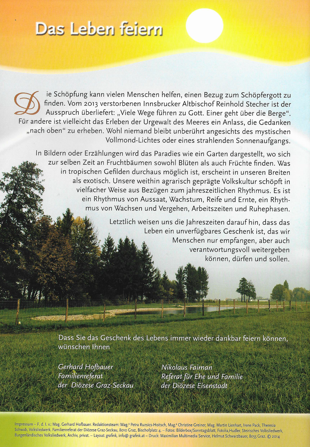 Die Bestellung ist via E-Mail an familienreferat@graz-seckau.at, per Post (Familienreferat der Diözese Graz-Seckau, Bischofplatz 4 - 8010 Graz) oder Telefon (0316/8041-297) möglich.