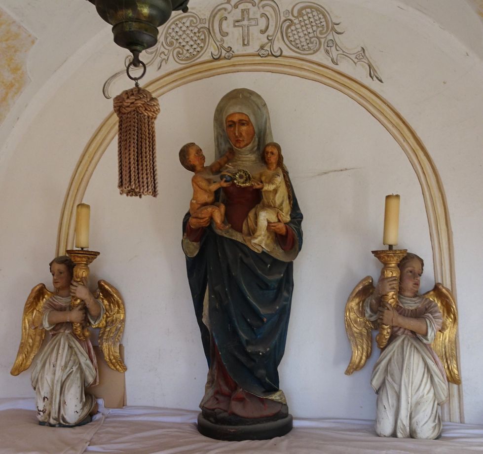 In der zentralen Mauernische befindet sich eine schöne Mutter-Anna-Statue, flankiert von zwei Engeln mit jeweils einem Kerzenhalter und einer Kerze in den Händen. An der Decke ist noch das ewige Licht befestigt. Es soll darin erinnern, dass Gott immer und überall gegenwärtig ist. Im Innenraum ist noch ein hölzerner brauner Kniebetstuhl und ein kleines Holztischerl untergebracht.