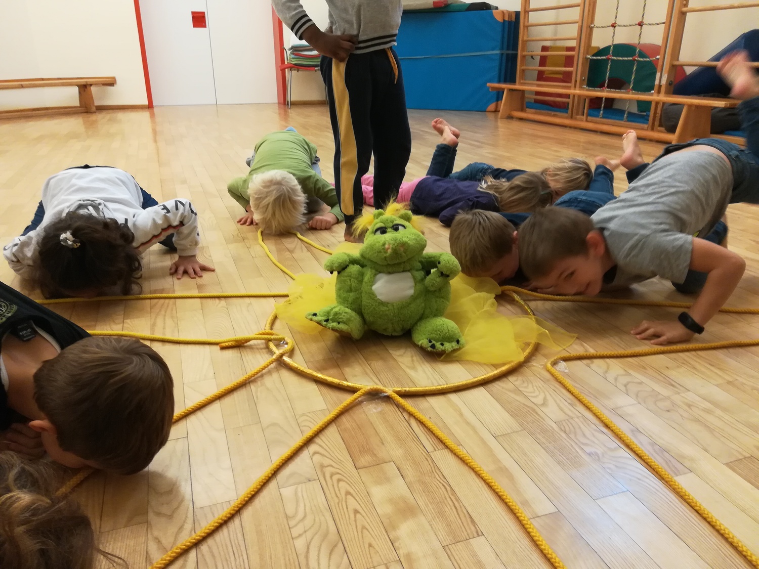 Neben unseren wöchentlichen Turneinheiten besucht uns heuer zum Jahresthema „Bewegung“ meistens Mittwochs unser Ludwig. Dies nennt sich „Bewegter Tag mit Ludwig“. Mit unserem Drachen erleben die Kinder viele lustige Bewegungsabenteuer und Bewegungsspiele im Turnsaal.