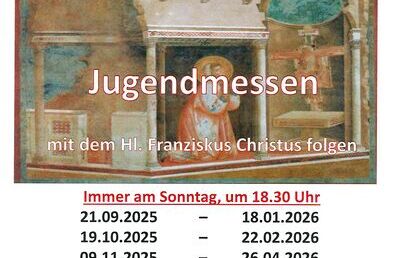 Wir laden sehr herzlich zu unseren Jugendmessen in Mariahilf ein. Unser P. Kustos (Provinzial) P. Bernhard Lang OFMConv. kommt von Neunkirchen zu uns und feiert mit uns diese Jugendmessen....