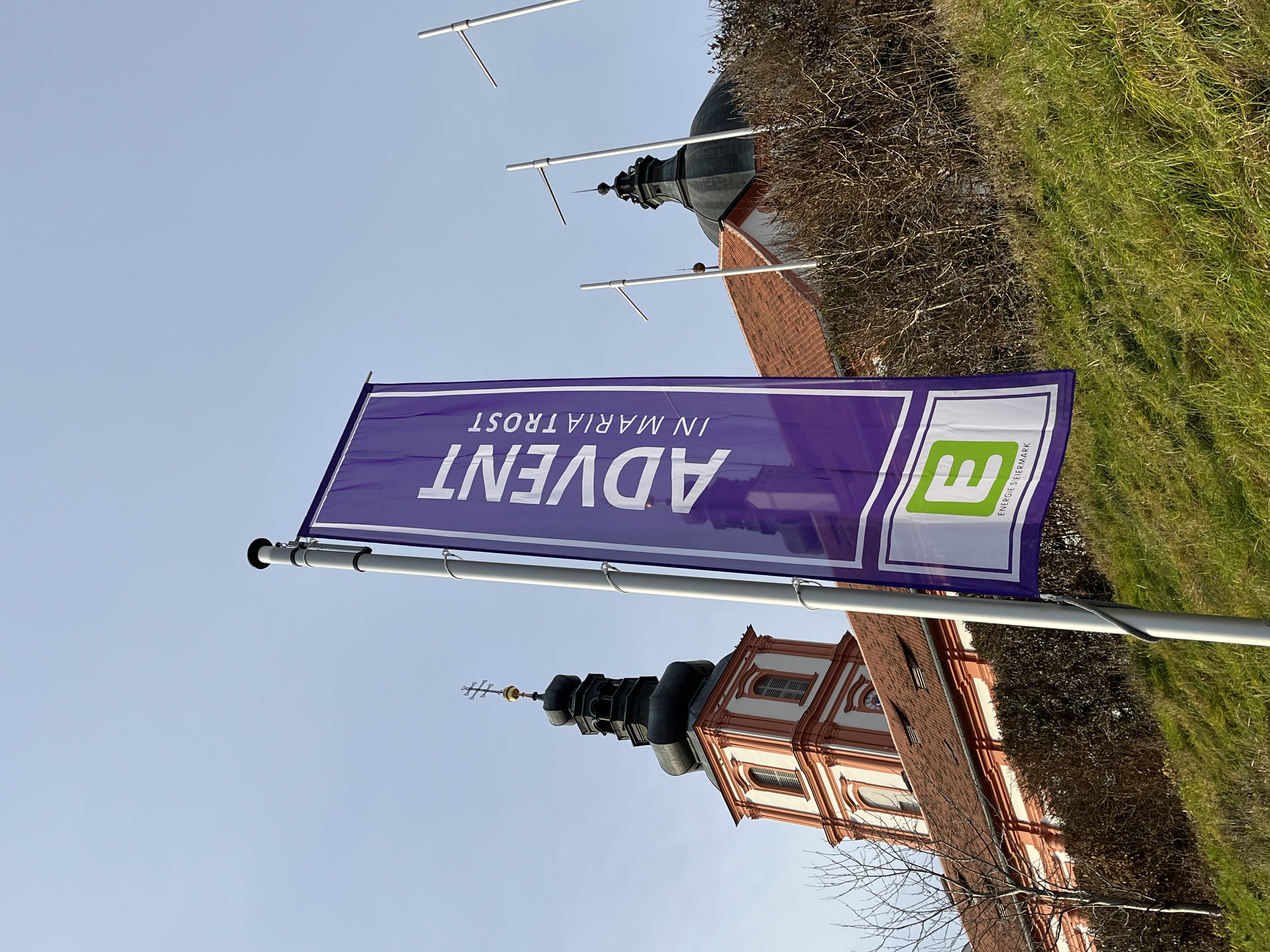 15 Unternehmen und Institutionen helfen – optisch fein sichtbar gemacht durch 18 Fahnen – mit, auf die Tiefenwirkungen von MARIATROST aufmerksam zu machen: 4 THEMEN-Fahnen stimmen die Besuchenden auf das Kirchenjahr ein und 14 SPONSORING-Fahnen signalisieren die verlässliche Projektbegleitung durch die Sponsoren.