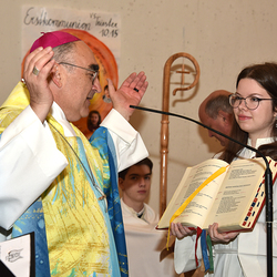 Am Sonntag, 16. April empfingen 28 Jugendlichen das Sakrament der Firmung. Gemeinsam mit unserem Firmspender Bischof Wilhelm Krautwaschl und unserem Gospelchor feierten wir einen eindrucksvollen und schwungvollen Gottesdienst!