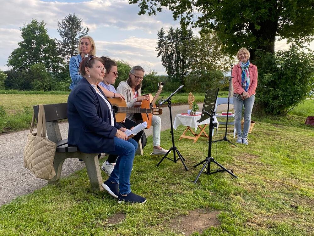 Mitten im blühenden Mai, begleitet von Summen und Zwitschern lässt es sich ganz anders singen und beten, in großer Dankbarkeit für Gottes schöne Schöpfung.