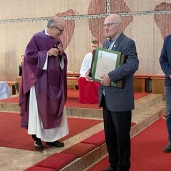 Hans Koch wurde nach dem Allerseelengottesdienst am 2.11. die goldene Ehrennadel der Mesnergemeinschaft überreicht. Unglaubliche 60 Jahre lang, auf den Tag genau, hat er diesen wertvollen Dienst in der Pfarre Lieboch geleistet. 50 Jahre lang alleine, seit 10 Jahren gibt es ein