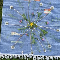 Trotz unbeständigem Wetter fanden sich am Freitag den 13. Mai dreizehn unerschrockene BesucherInnen zur Maiandacht beim Haindlkreuz in der Mühlau ein. Maria Pitsch feierte eine stimmungsvolle Andacht mit schöner Musikbegleitung zu Gottes wundervoller Schöpfung mit uns. Für eine Stärkung mit Kräutersaft, Aufstrichbroten mit Kräutern vom Platz und Schörgis Kräuterschnaps reichte gerade noch die Zeit bis zum nächsten Regenguß. Statt dem geplanten Kräuterspaziergang wurde zumindest ein Blüten Mandala gelegt.