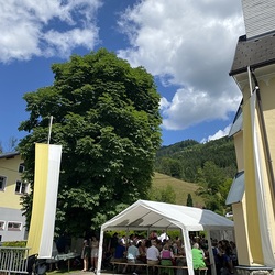 Pater Thomas feierte mit uns das Hochamt um 10:30 Uhr. Geige, Orgel und Trompeten brachten uns in feierliche Stimmung. Nach dem Gottesdienst spielte die Bergknappenkapelle Unterlaussa. Es gab alles von Schnitzel bis Schilcher Charmant.