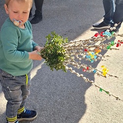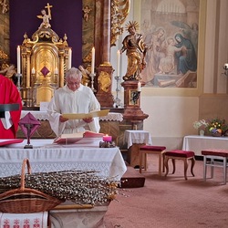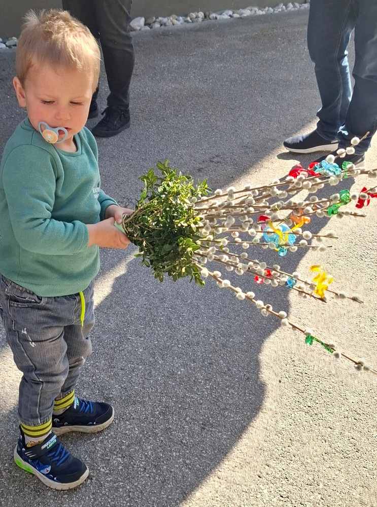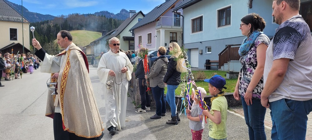 Die Karwoche, auch Heilige Woche genannt, beginnt mit den Palmsonntag. In der Karwoche stehen das Leiden, das Sterben und die Auferstehung von Jesus im Mittelpunkt. In Gams wurde bereits am Palmsamstagnachmittag bei herrlichen Frühlingswetter die Palmweihe von Pater Engelbert und Wortgottesdienstleiter Franz Ließ abgehalten. Sehr viele Besucher und Kinder mit ihren selbstgebunden und schön geschmückten Palmbuschen wohnten der Palmweihe bei. Die anschließende Prozession von der Volksschule zur Kirche wurde von der Musikkapelle Gams musikalisch begleitet. Die Palmbuschen sollen an Jesus Christus erinnern und das Haus vor Blitz und Feuer schützen.