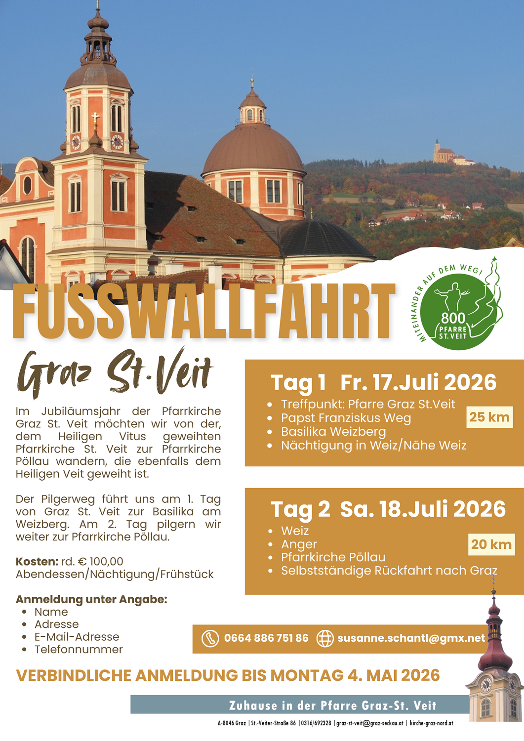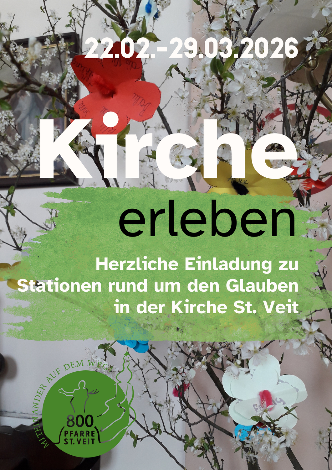 Unsere Pfarre ist nicht statisch. Der geschwungene Kirchturm deutet auf die Bewegung in die Zukunft hin. Über dem Torbogen lädt der hl. Vitus mit der Märtyrerpalme ein, einereits in die Gemeinschaft der Pfarre zu kommen und andererseits hinaus zu gehen, um Glaubenszeugnis zu geben.